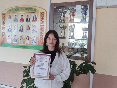 10.10.2023Учащиеся и педагоги колледжа принимают активное участие в различных конкурсах и награждаются дипломами и грамотами. Учащаяся 2 курса Хвостова Полина награждена дипломом 2 степени в номинации «Литературное творчество», возрастная категория 16-18 лет, главного управления по образованию Минского областного исполнительного комитета за участие в областном этапе республиканской выставки –конкурса детского и молодежного творчества «PROосвобождение», посвященной Году мира и созидания. Поздравляем с наградой Полину и руководителя Шевчук Диану Ивановну!