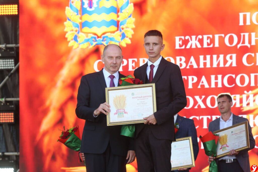 21.09.2025Почетной грамотой Администрации Президента Республики Беларусь, Благодарственным письмом председателя Постоянной комиссии по аграрной политике награжден Андрей Алексейчик, водитель-семитысячник ОАО "Кухчицы" Клецкого района. . ЗАО "Патио" поздравило кухчицкого лидера и вручило сертификат на ноутбук. Лучшим молодым водителем области назван Никита Сиротюк. Никита отмечен Почетным дипломом Минского областного исполнительного комитета. Скутер от "Гомсельмаша" получил механизатор ОАО "Кухчицы" Андрей Попок, который во время жатвы работал на тракторе "Белорус-3522" с инновационным агрегатом Гомельских машиностроителей - бункером-перегрузчиком.